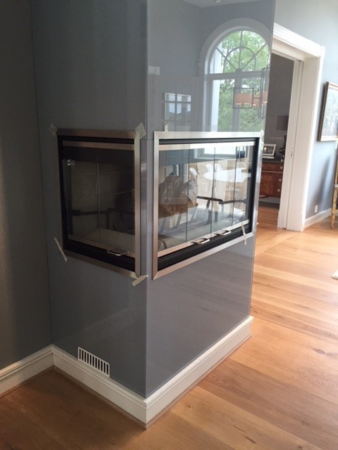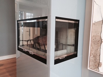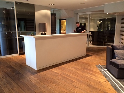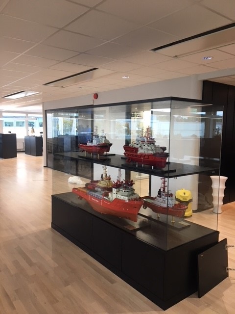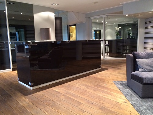 Før- og etterbilde. Her er resepsjonsdisken kledd med sortlakkert sikkerhetsglass :)